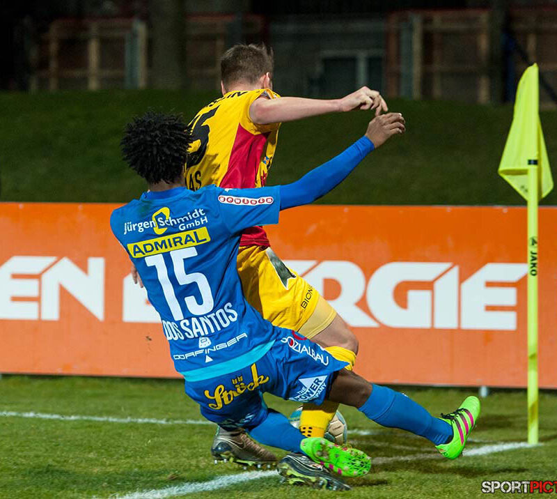 Wien,AUSTRIA,19.MAR.16 - Fussball - Skygo Erste Liga 2015/16, FAC - SV Kapfenberg, Bild zeigt Flavio Dos Santos Dias (15) (FAC), Manuel Haas (15) (SV Kapfenberg).Photo: Sportpictures.at/Wolfgang Kern