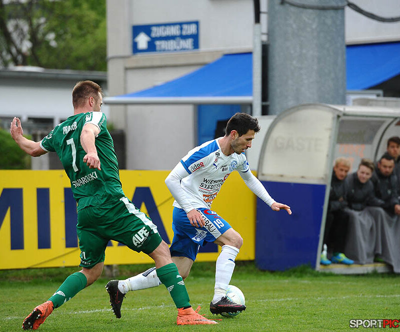 Wien, Oesterreich, 18.APR.17 - Fussball - Erste Liga Oesterreich 2016/17, FAC - WSG Wattens, Bild zeigt Marco Sahanek (10), Sandro Neurauter. Photo: www.sportpictures.at/Wolfgang Kern
