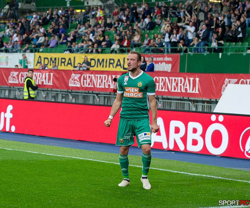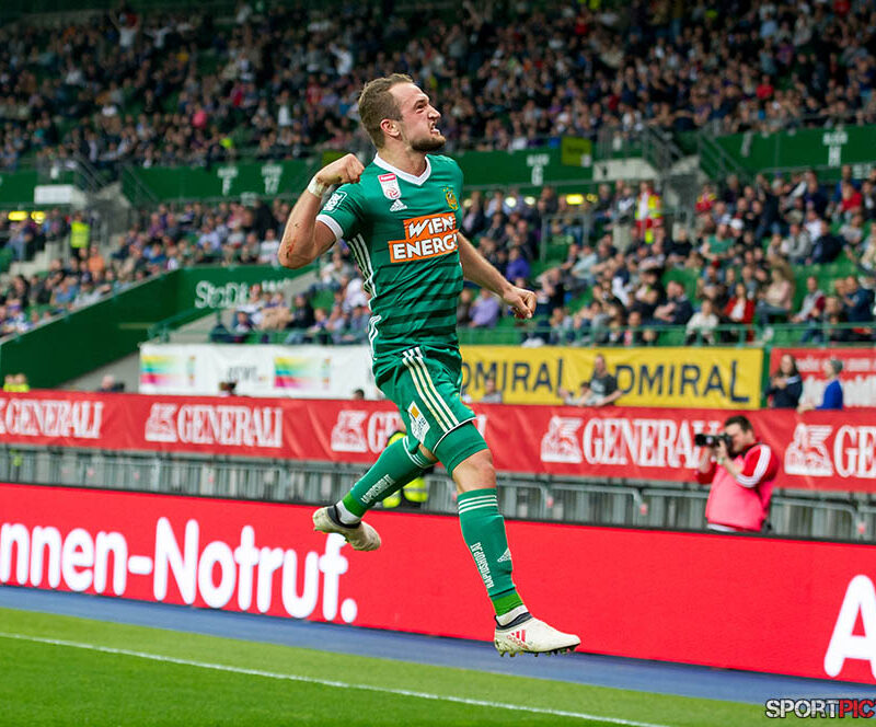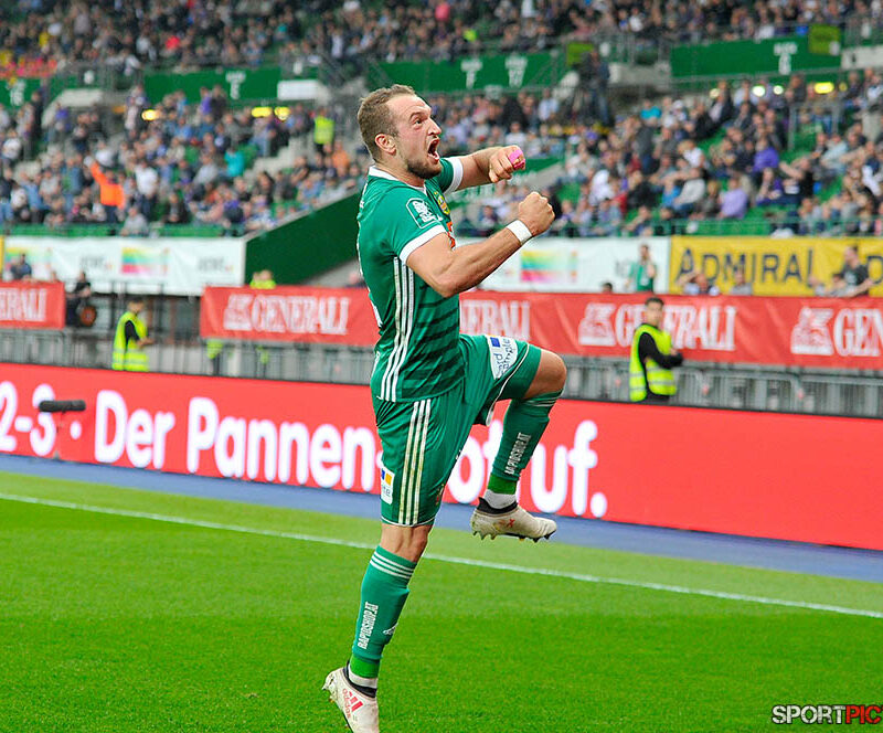Wien,Oesterreich,15.APR.18 - FUSSBALL - Bundesliga Oesterreich 2017/18, Austria Wien - Rapid Wien. Bild zeigt Torjubel Veton Berisha (9, Rapid Wien). Photo: sportpictures.at/ Wolfgang Kern