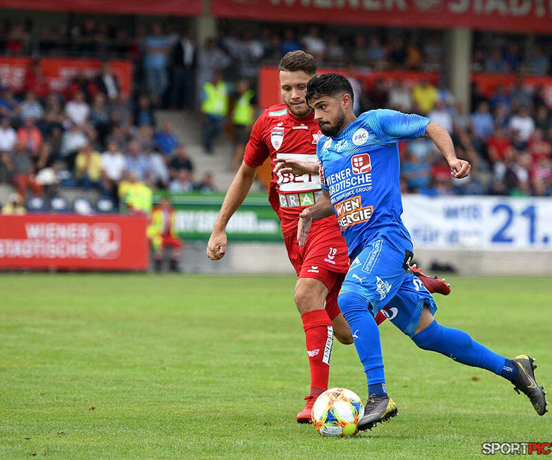 Wien,Oesterreich,28.JUL.19 - Fußball - 2. Liga Oesterreich 2019/20, FAC vs Grazer AK, Bild zeigt Christian Bubalovic, Bernhard Fila. Photo: Sportpictures.at/Wolfgang Kern