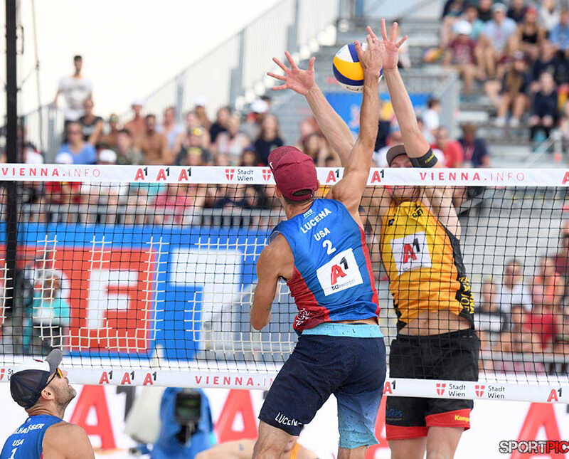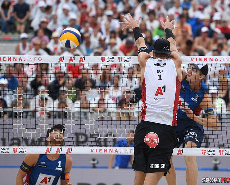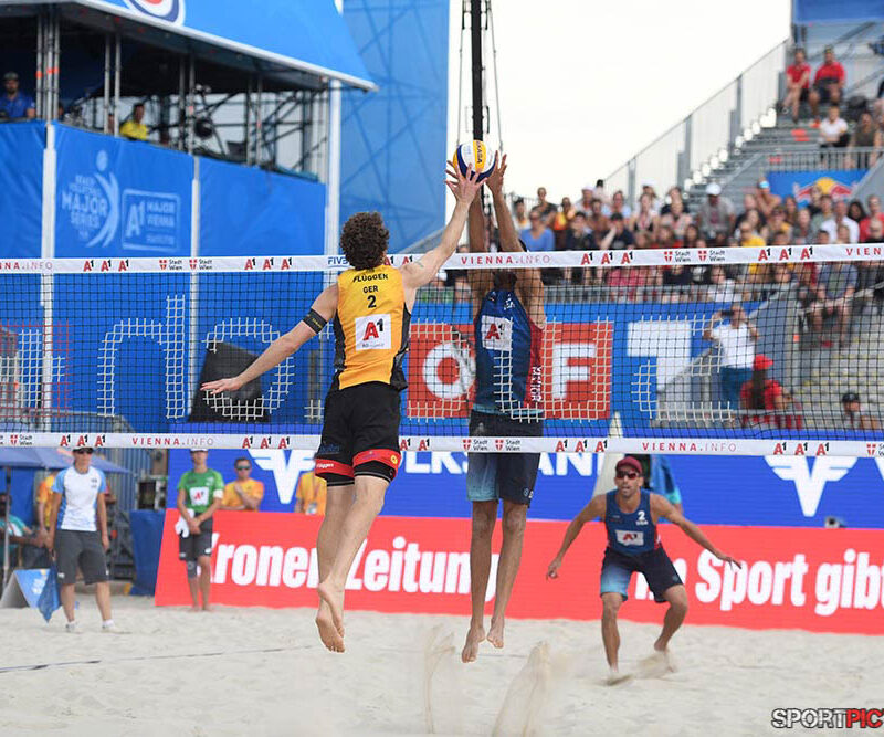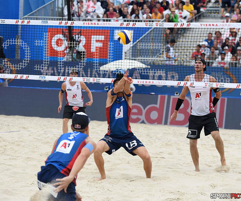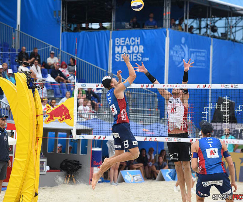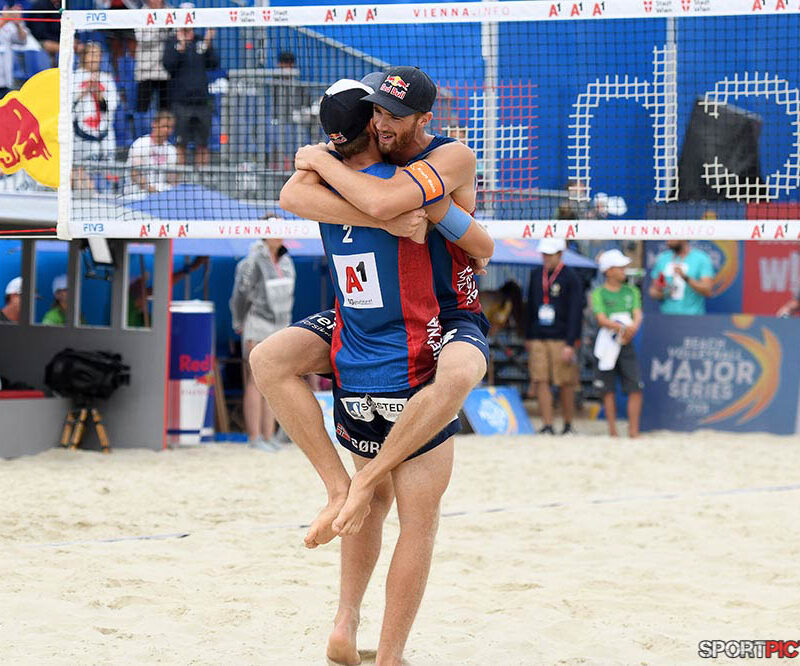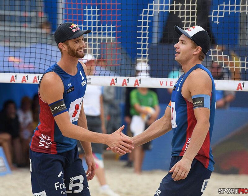 Wien,Österreich,14.JUL.24 - Beachvolleyball A1 Beach Pro Vienna. Bild zeigt Anders Mol, Christian Soerum, Goldmedaille. Photo: Sportpictures.at/Wolfgang Kern
