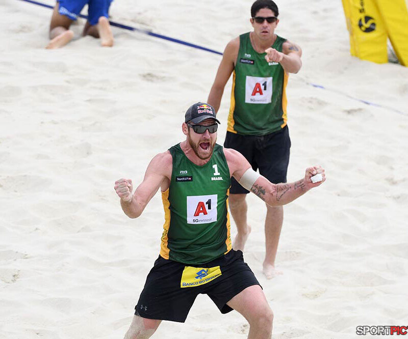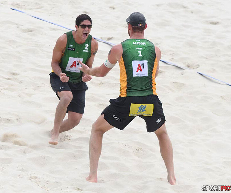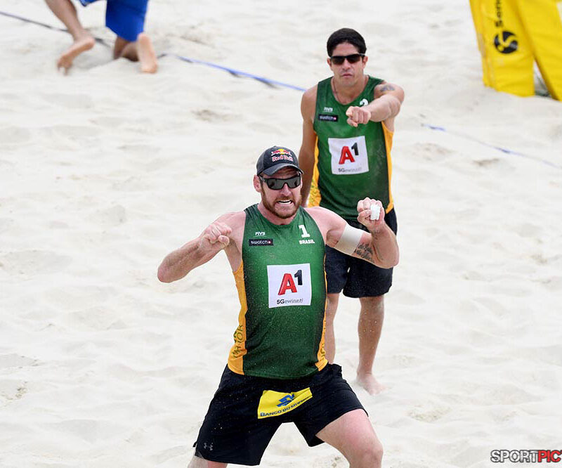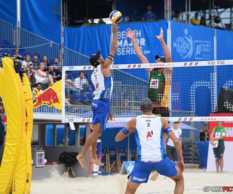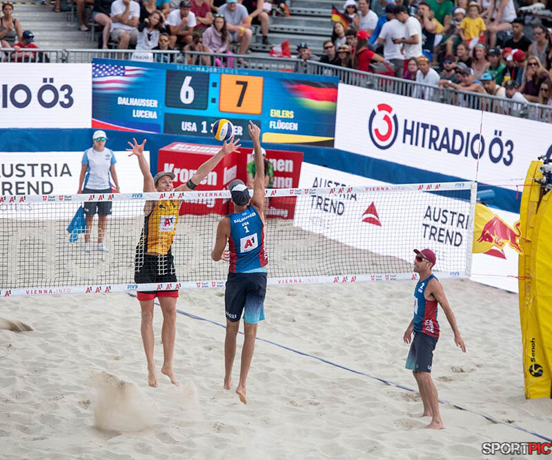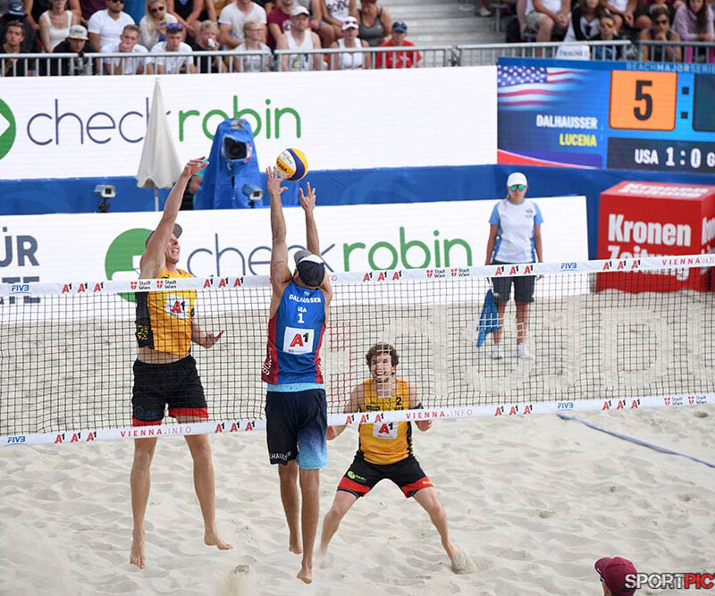 Wien,Österreich,14.JUL.24 - Beachvolleyball A1 Beach Pro Vienna. Bild zeigt Anders Mol, Christian Soerum, Goldmedaille. Photo: Sportpictures.at/Wolfgang Kern