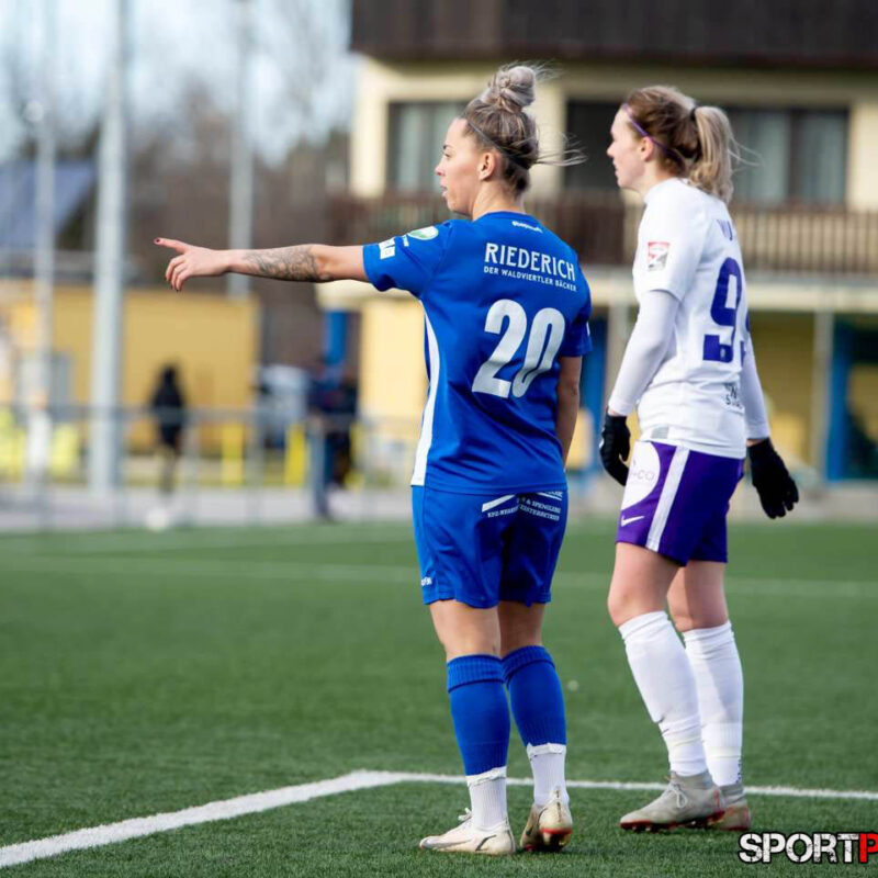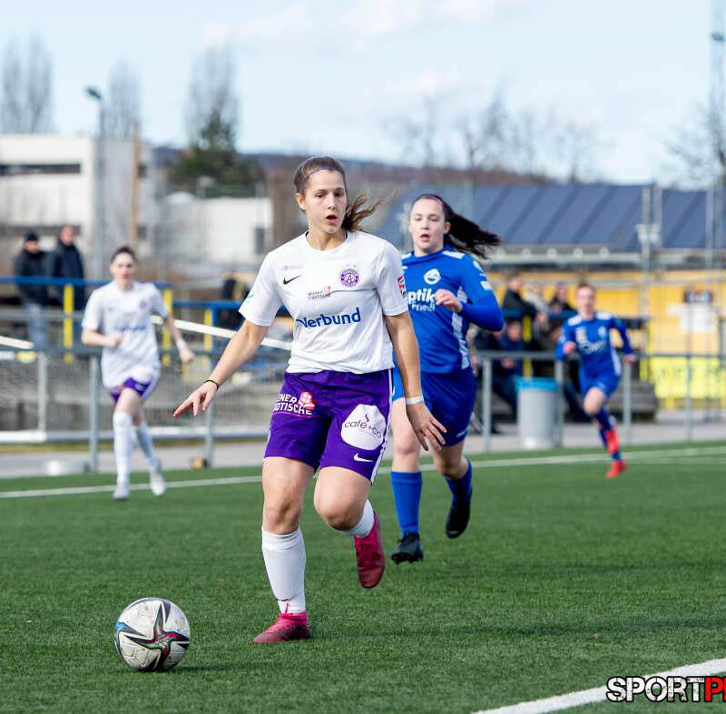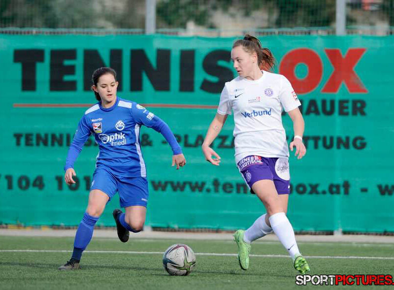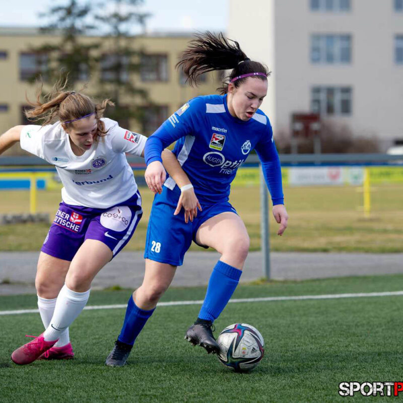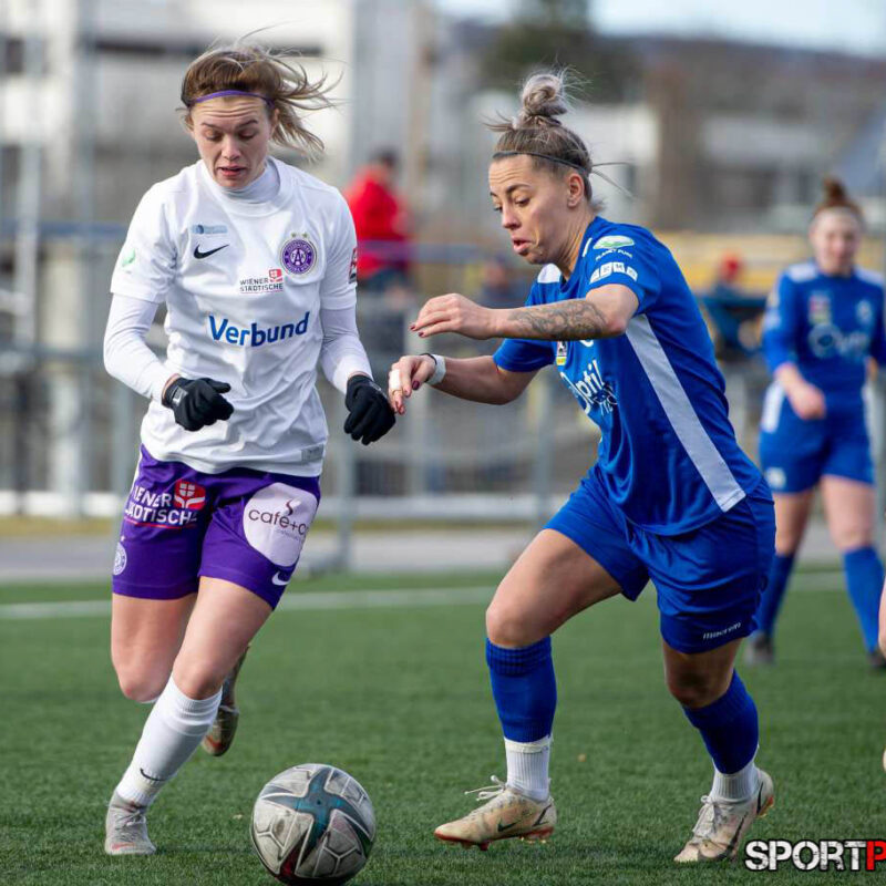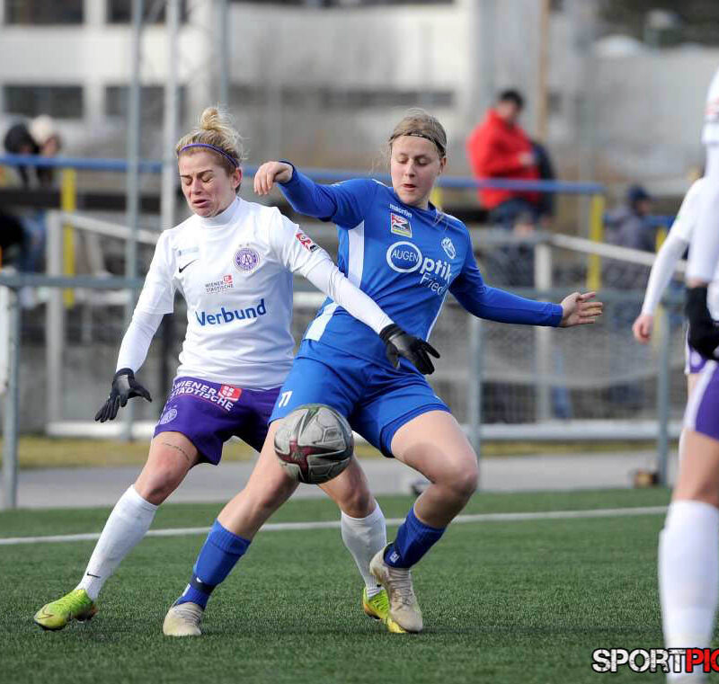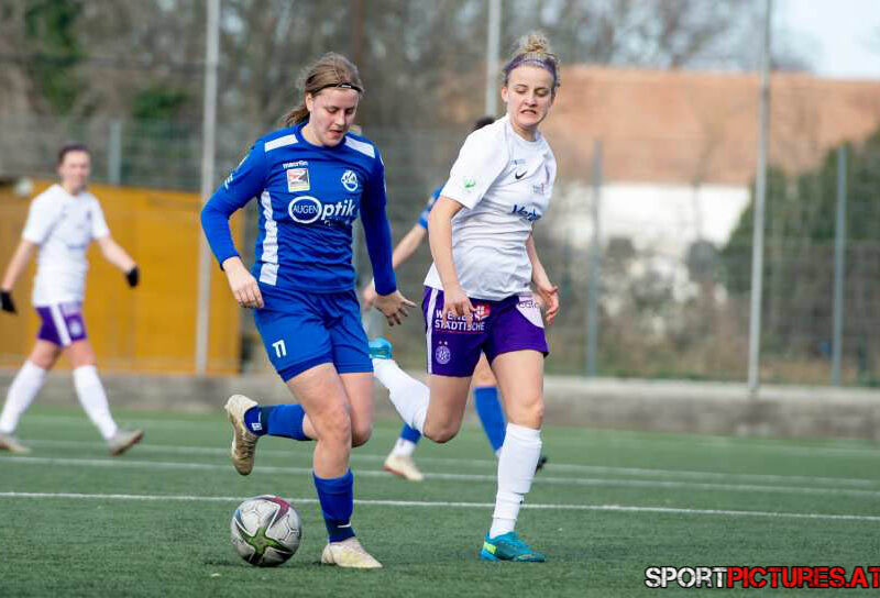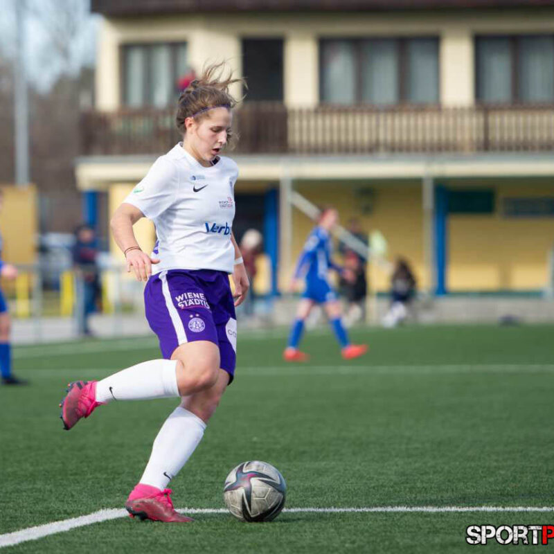 Wien,Österreich,19.FEB.22 - Fussball Testspiel, Austria Wien Frauen - SV Horn Frauen. Bild zeigt Anna Petrusova, Evelin Kurz. Photo: Sportpictures.at/Wolfgang Kern