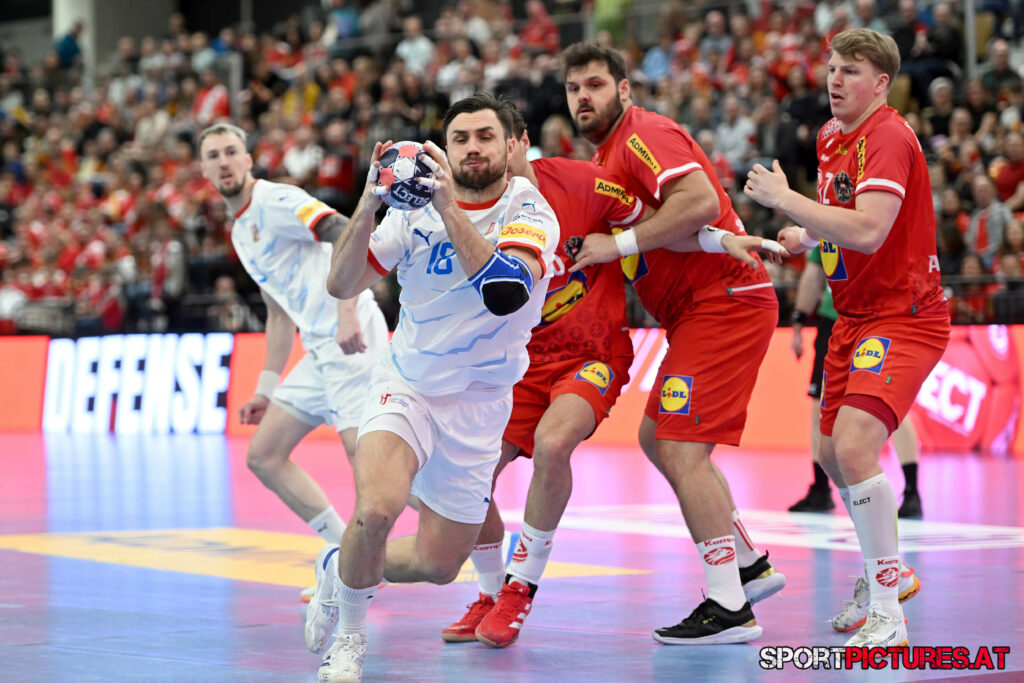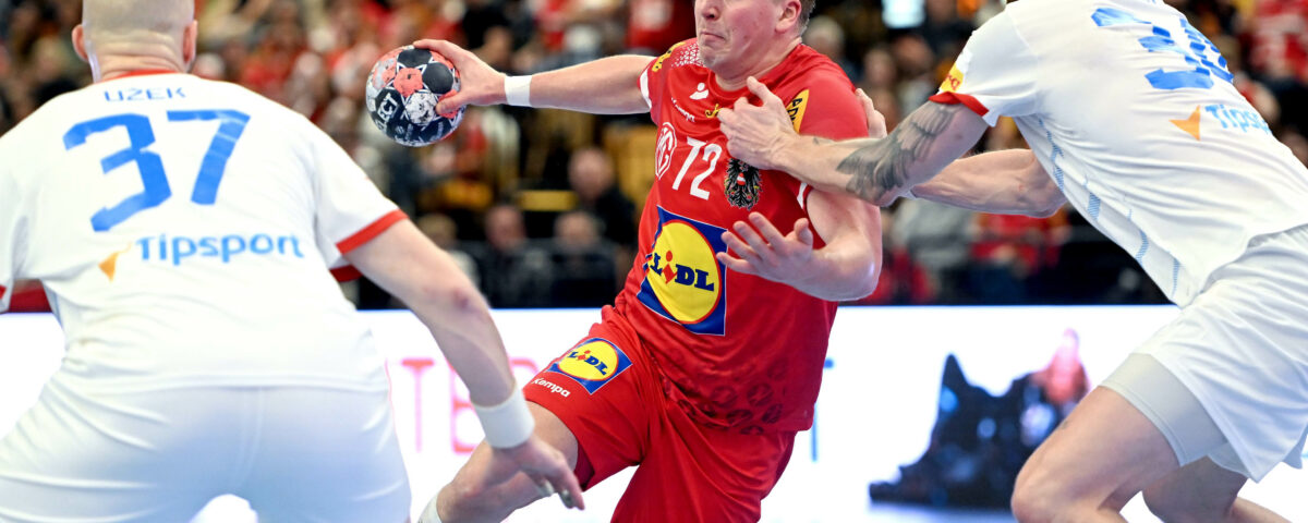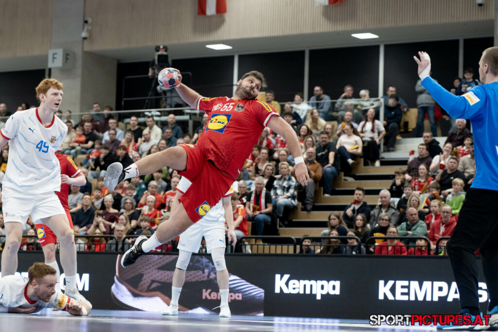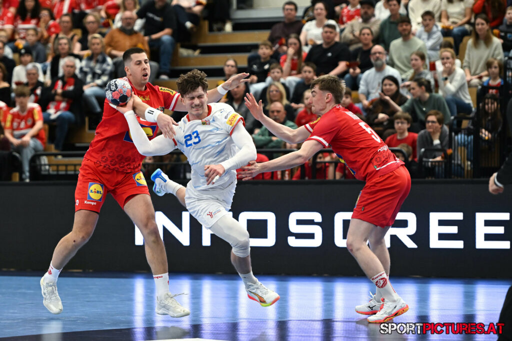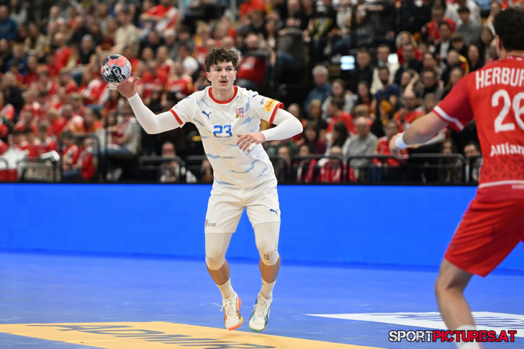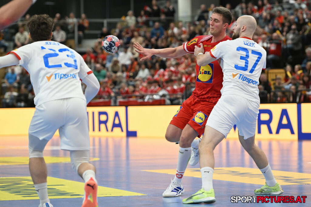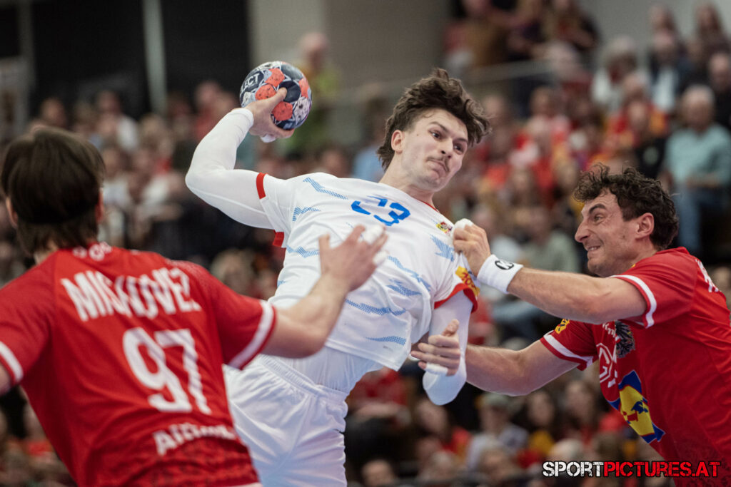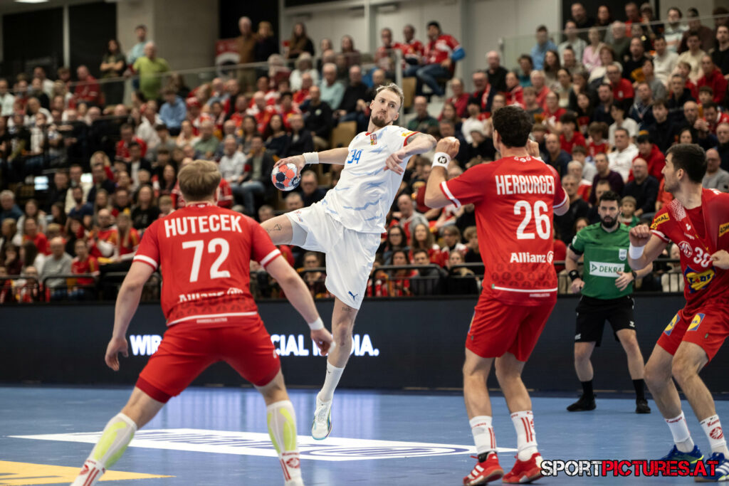 Wien,Österreich, 06.JAN.26 - Handball, Testspiel, Oesterreich - Tschechien. Bild zeigt Nikola Bilyk, Jan Uzek, Matej Nantl. Photo: sportpictures.at/Wolfgang Kern