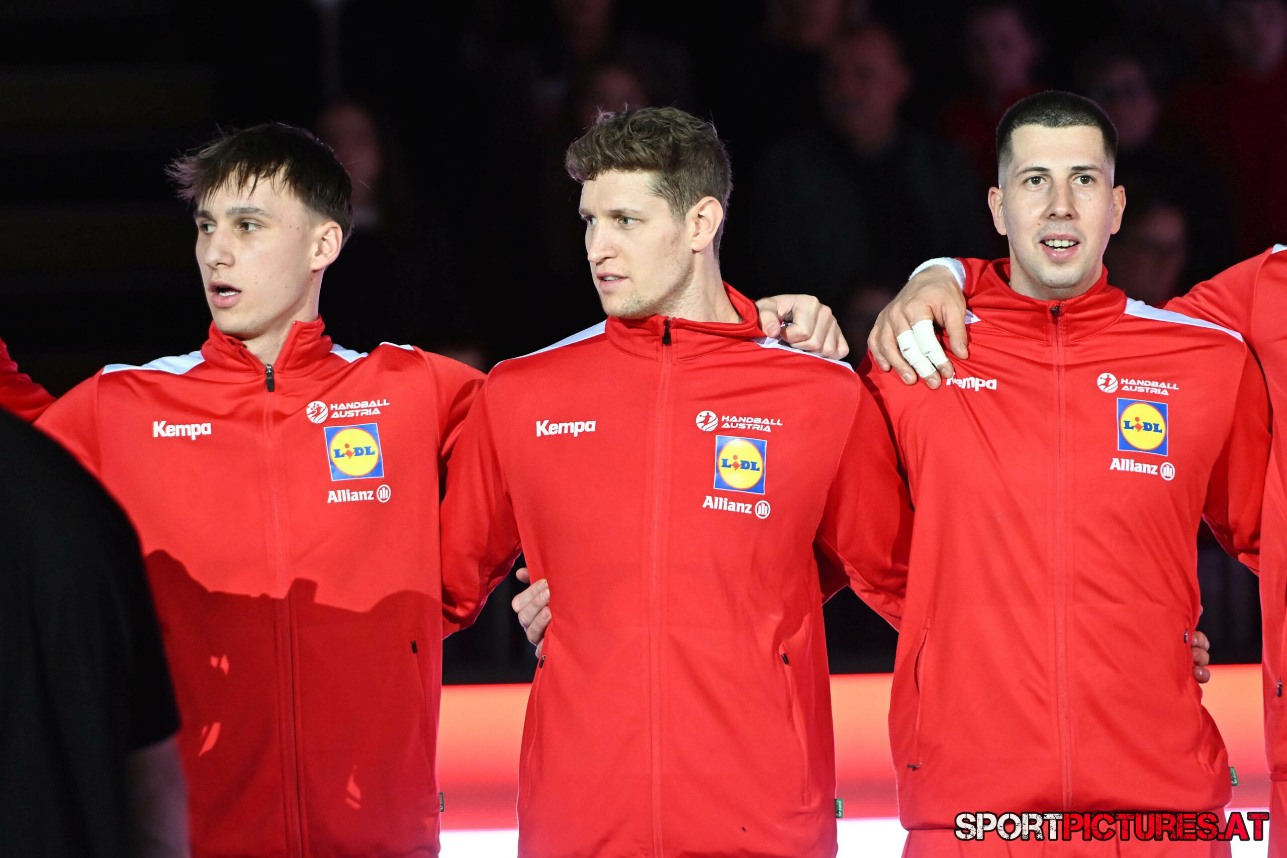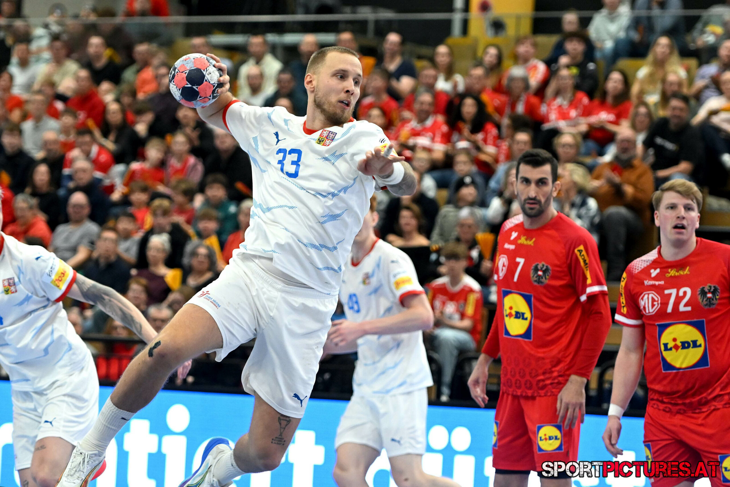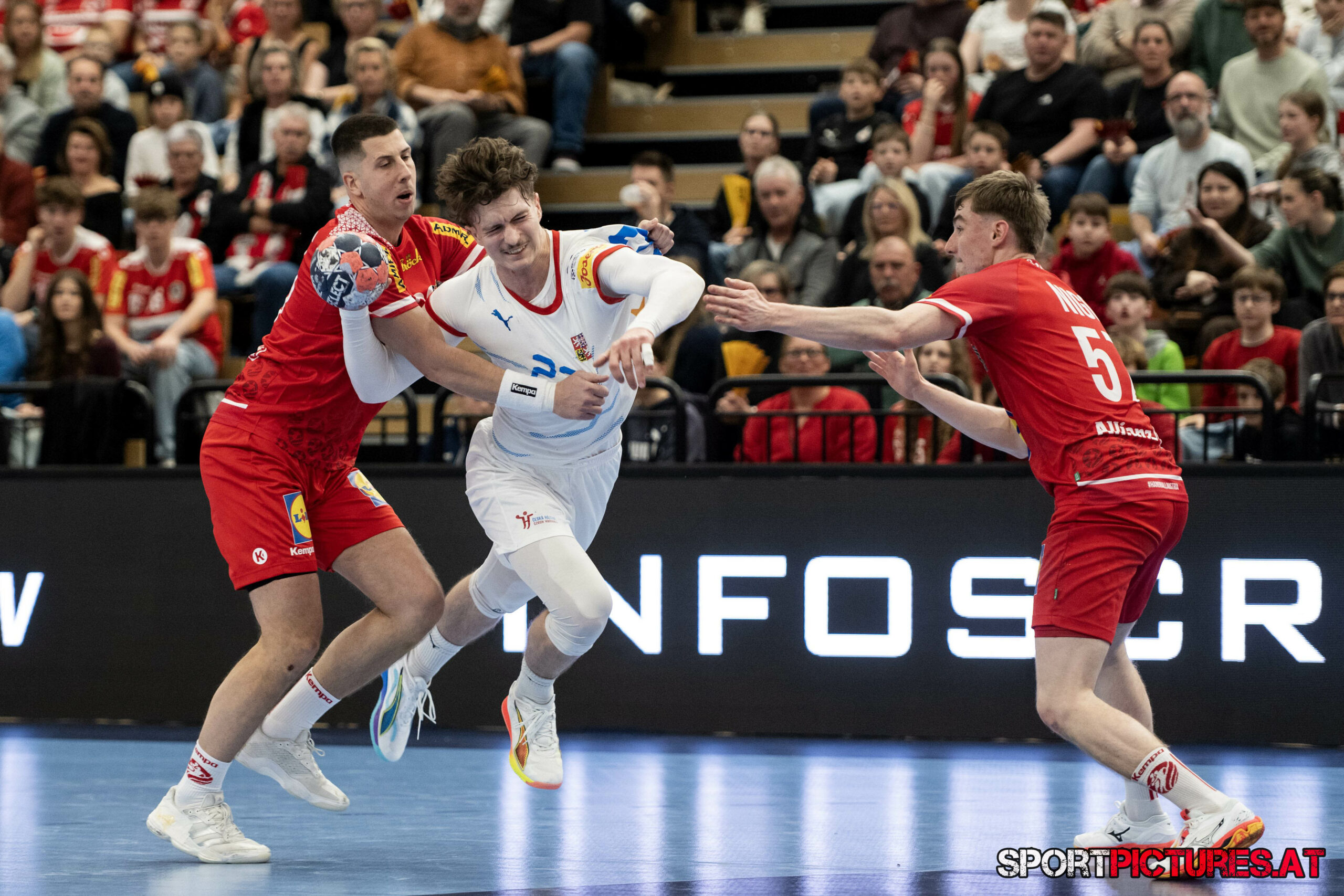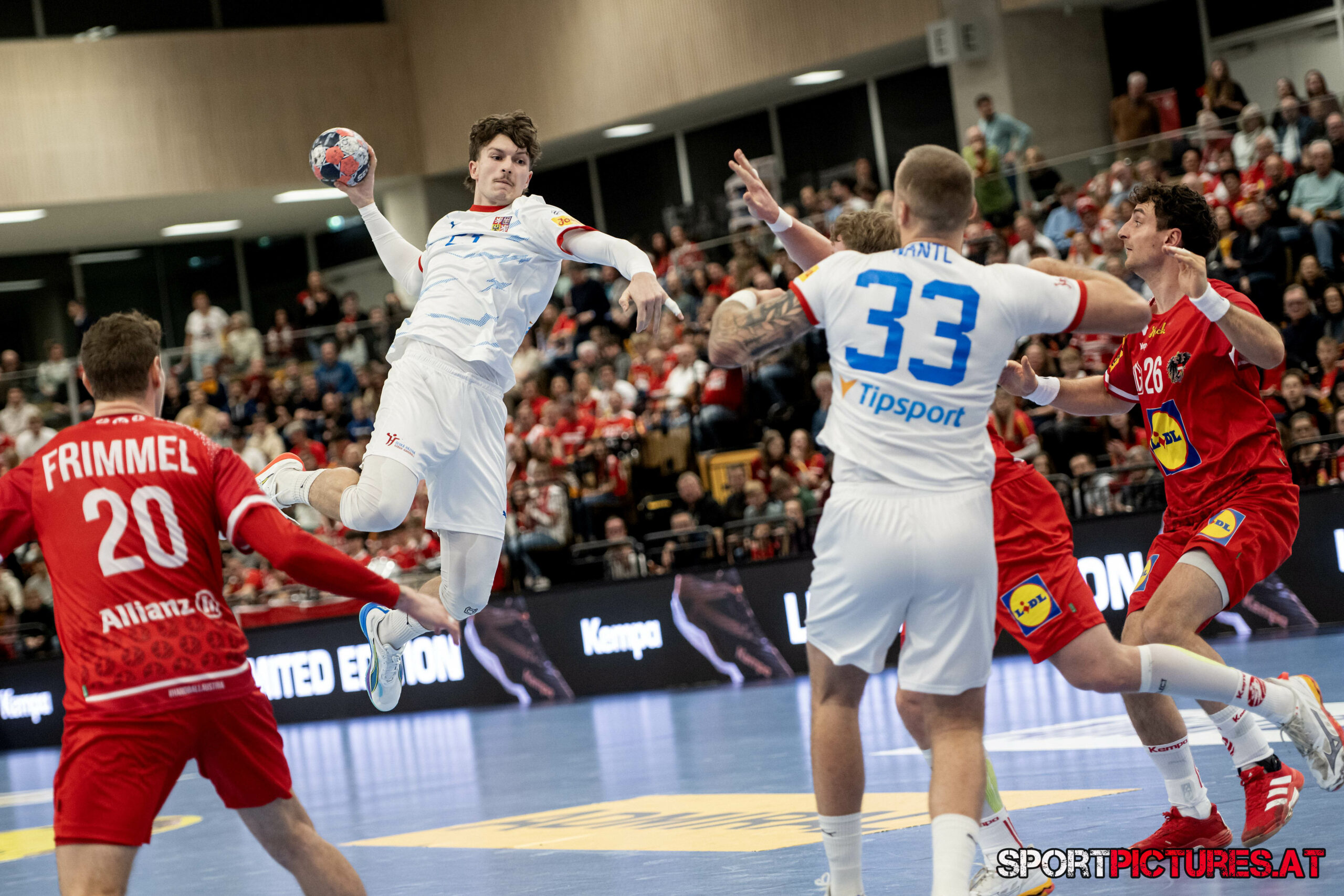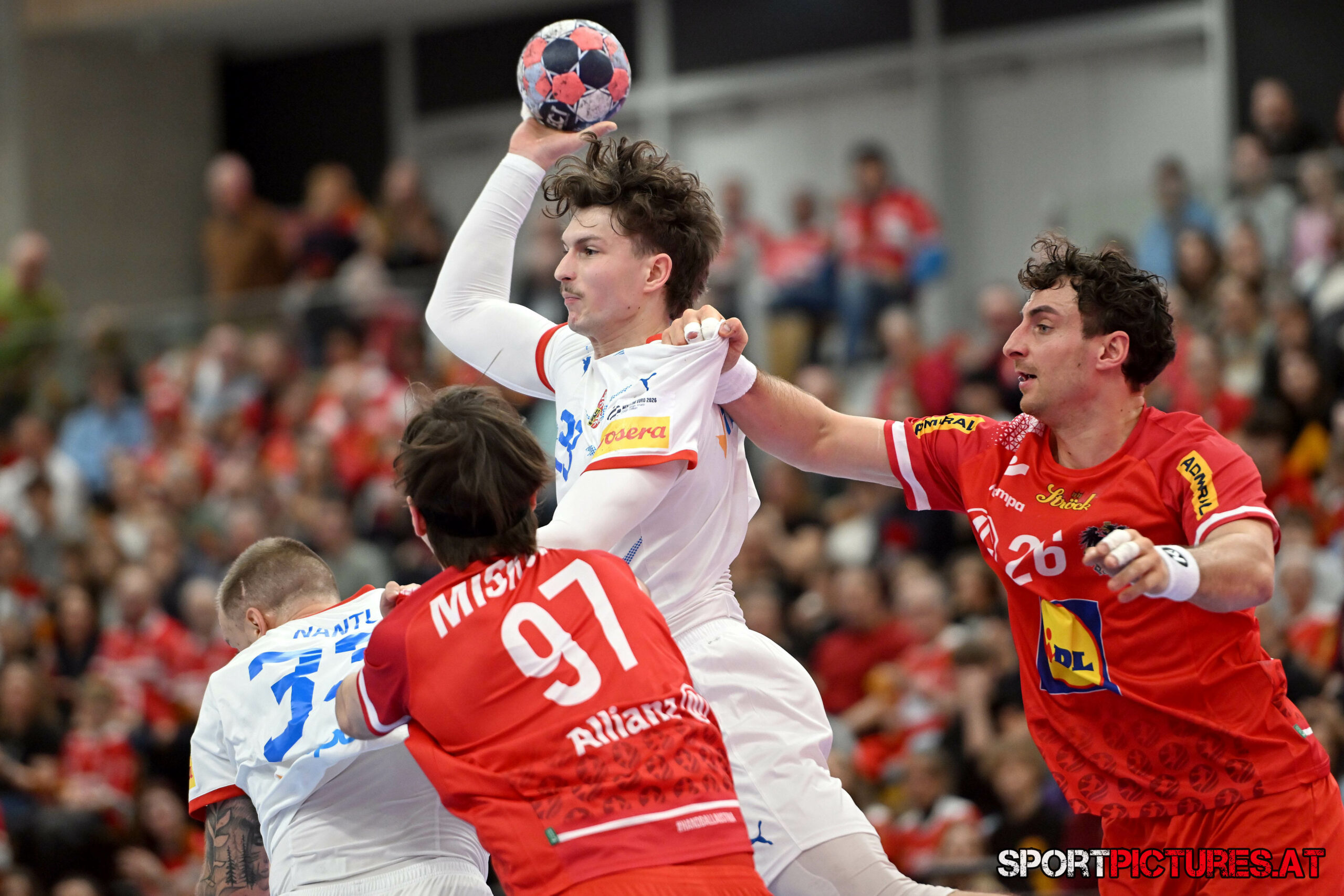 Wien,Österreich, 06.JAN.26 - Handball, Testspiel, Oesterreich - Tschechien. Bild zeigt Nikola Bilyk, Jan Uzek, Matej Nantl. Photo: sportpictures.at/Wolfgang Kern