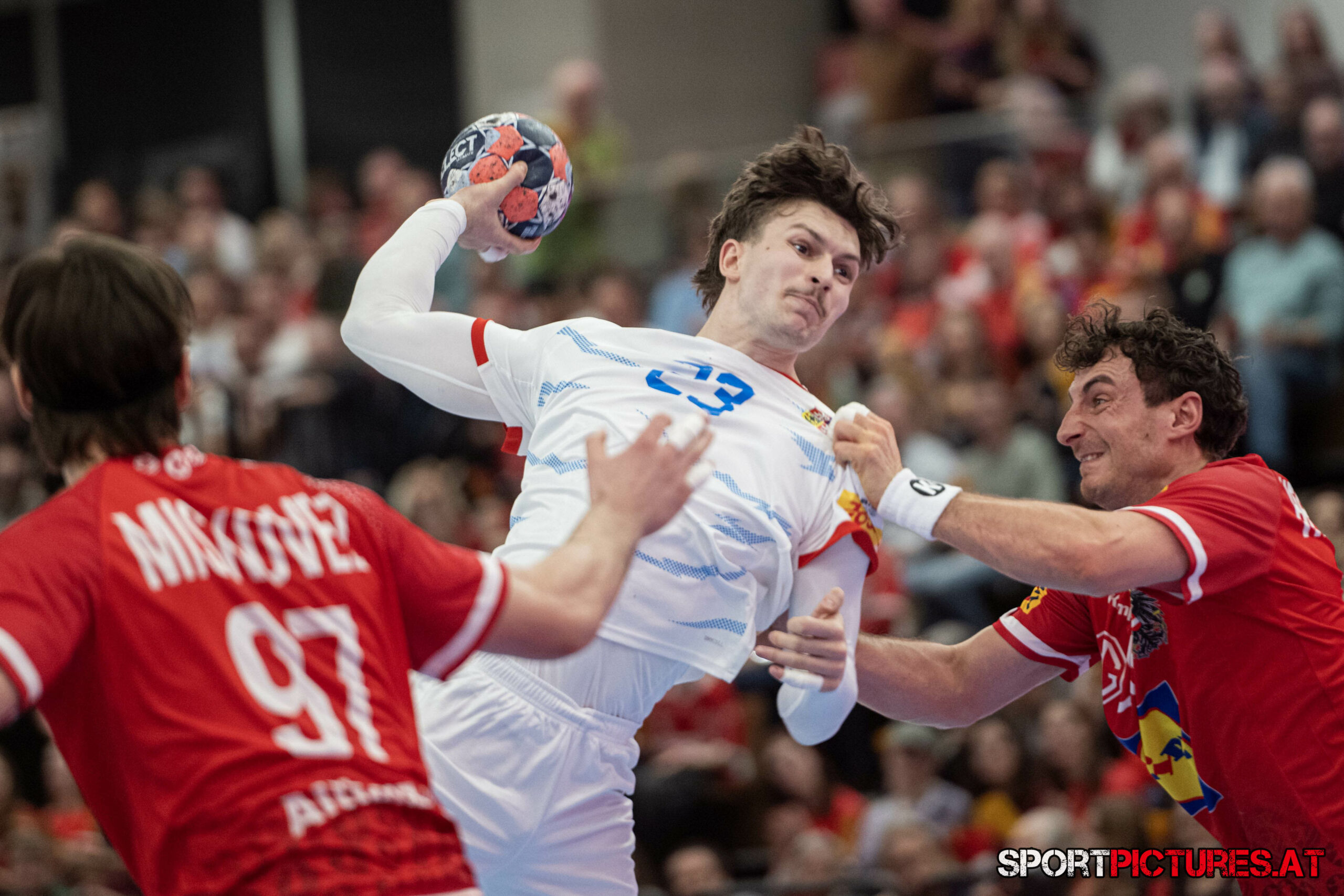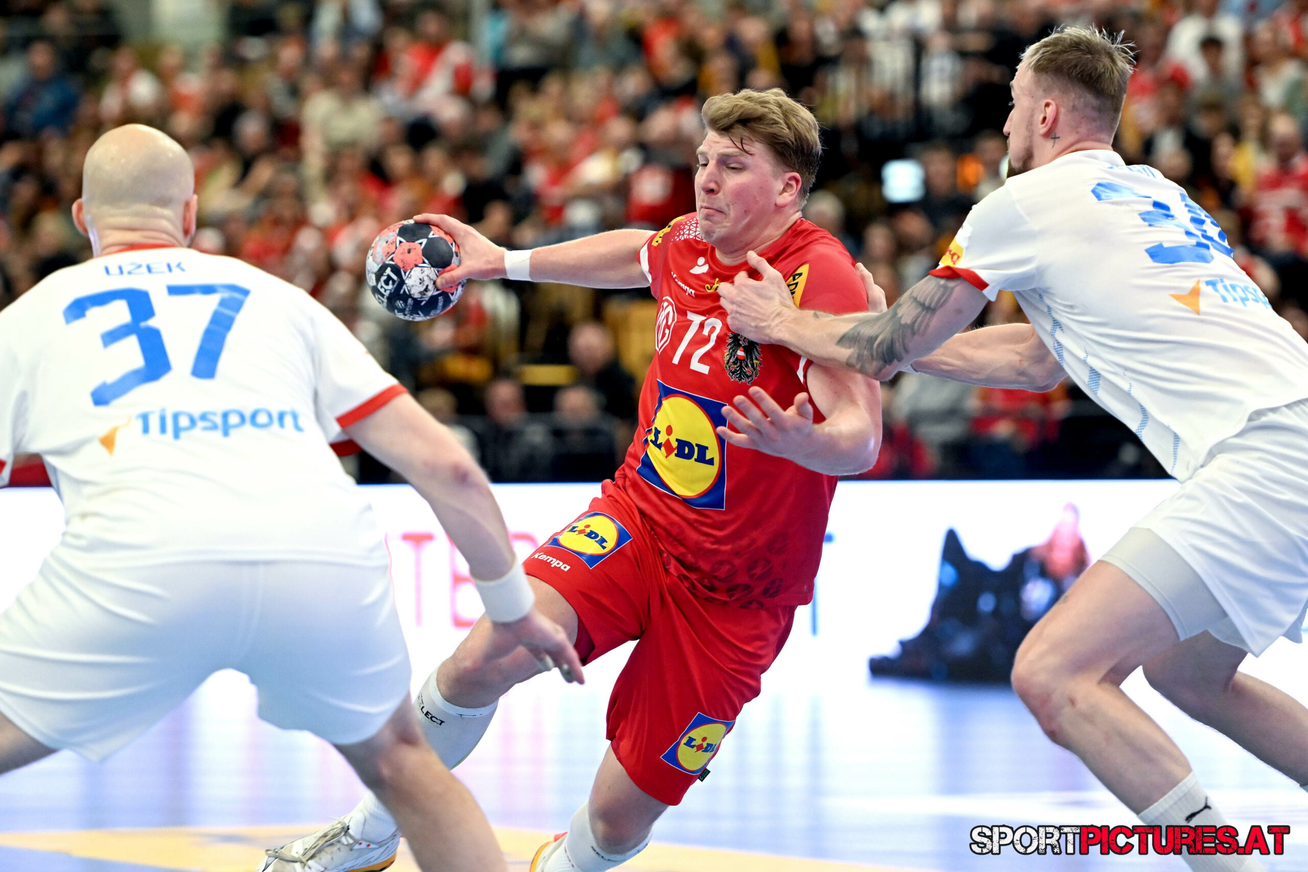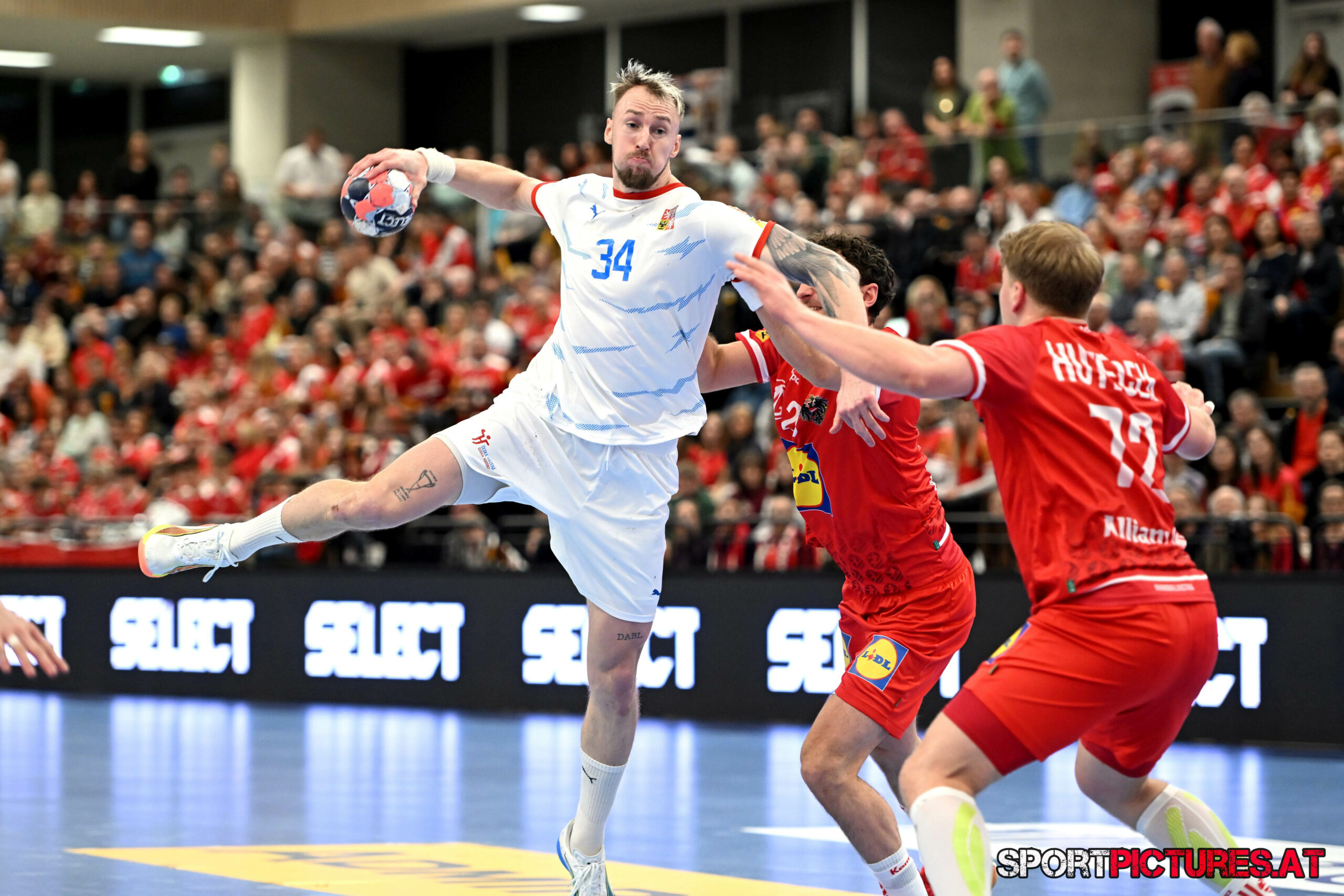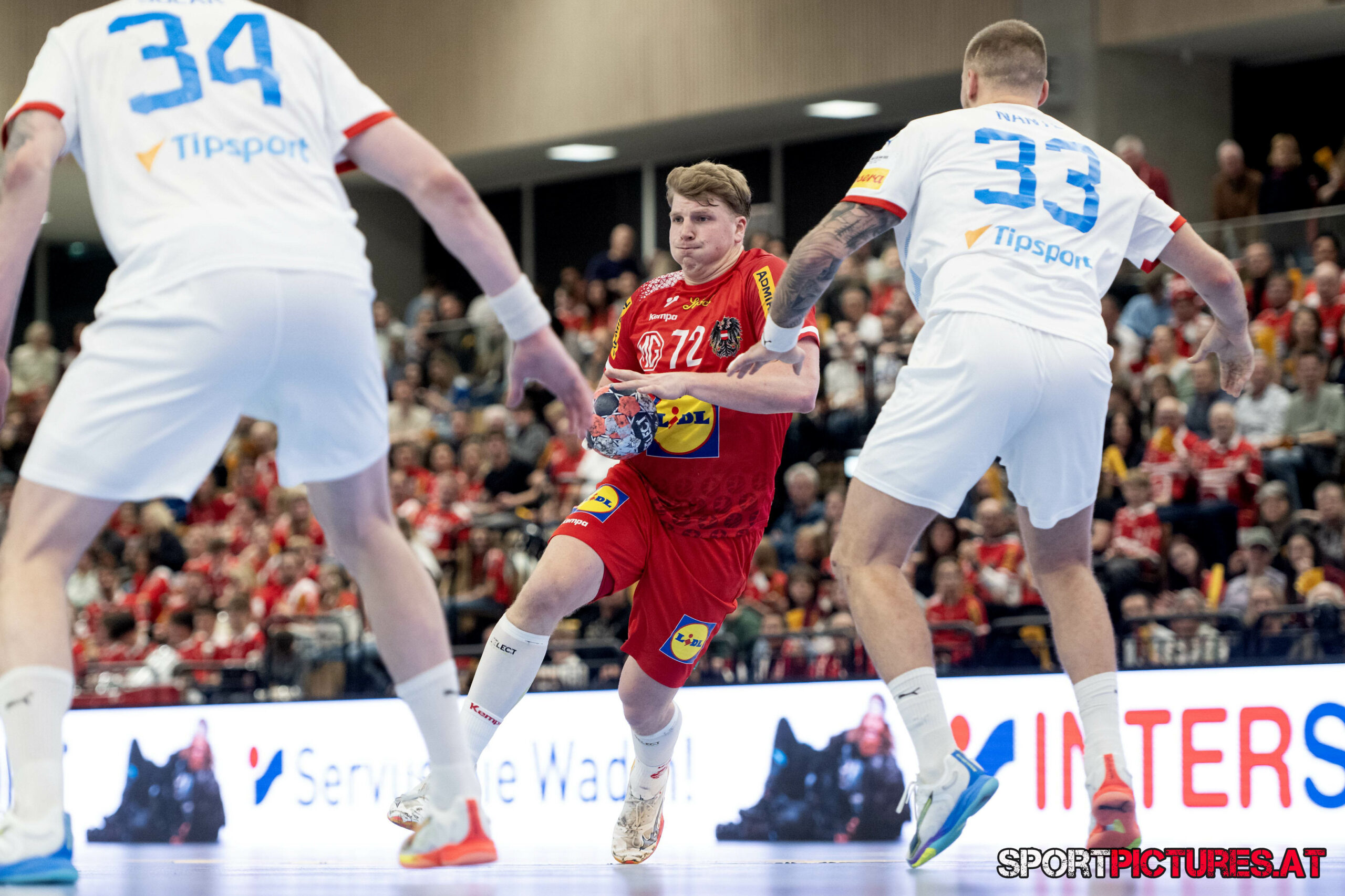Wien,Österreich, 06.JAN.26 - Handball, Testspiel, Oesterreich - Tschechien. Bild zeigt Nikola Bilyk, Jan Uzek, Matej Nantl. Photo: sportpictures.at/Wolfgang Kern