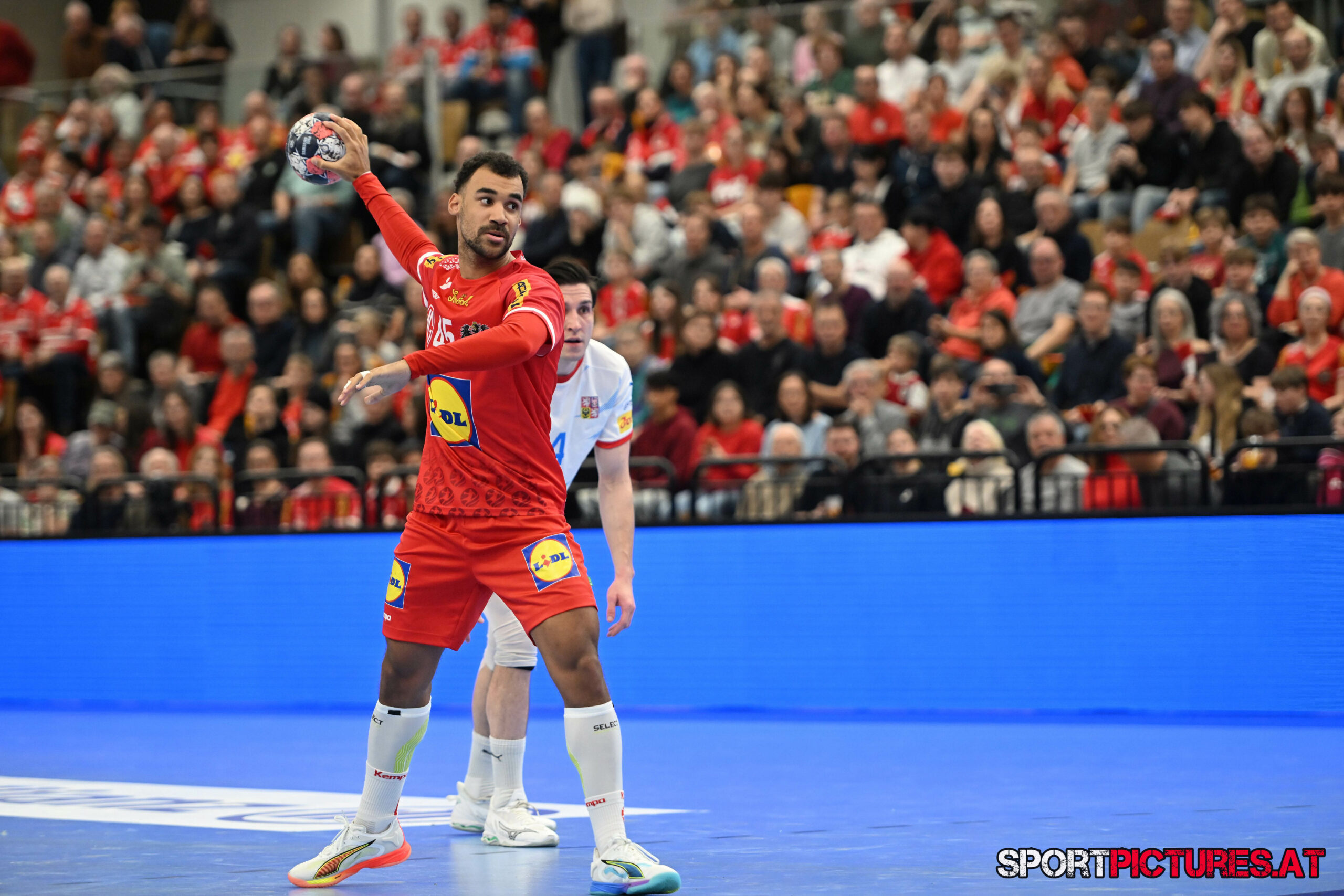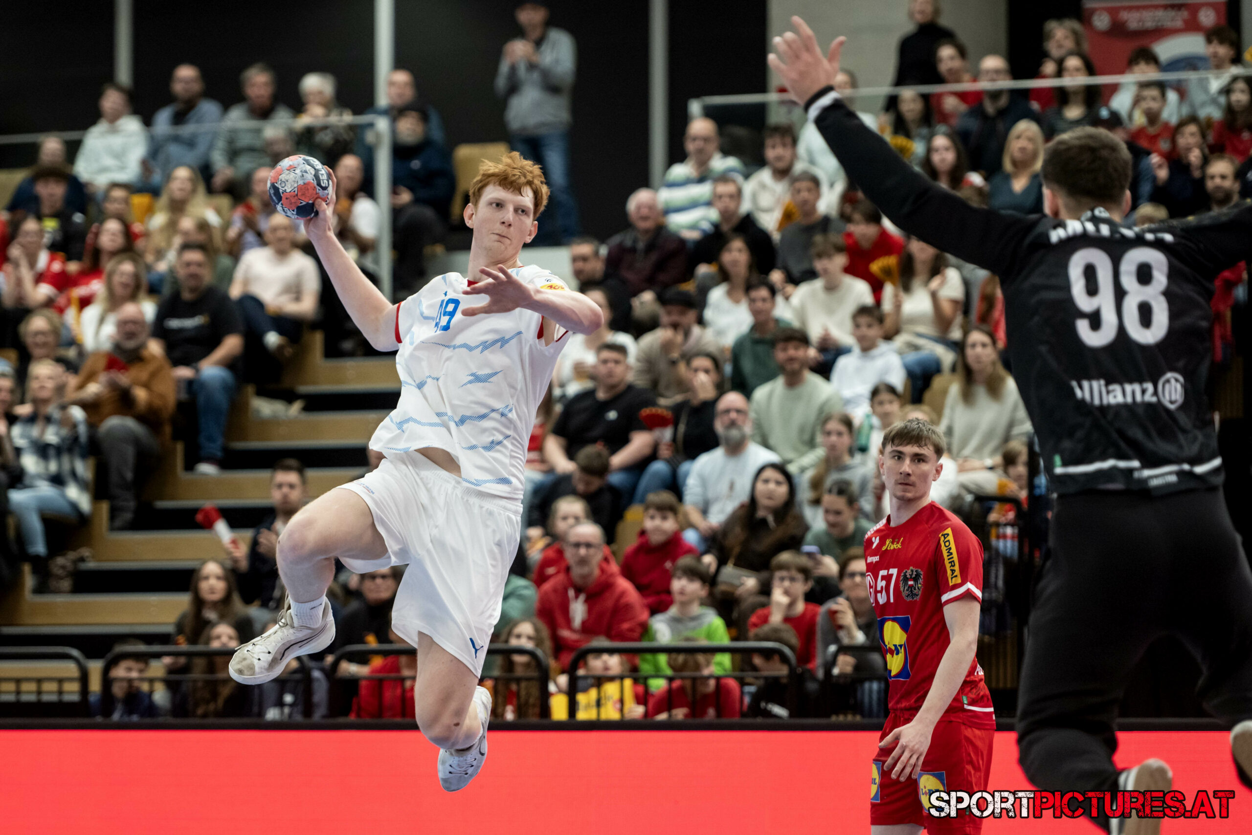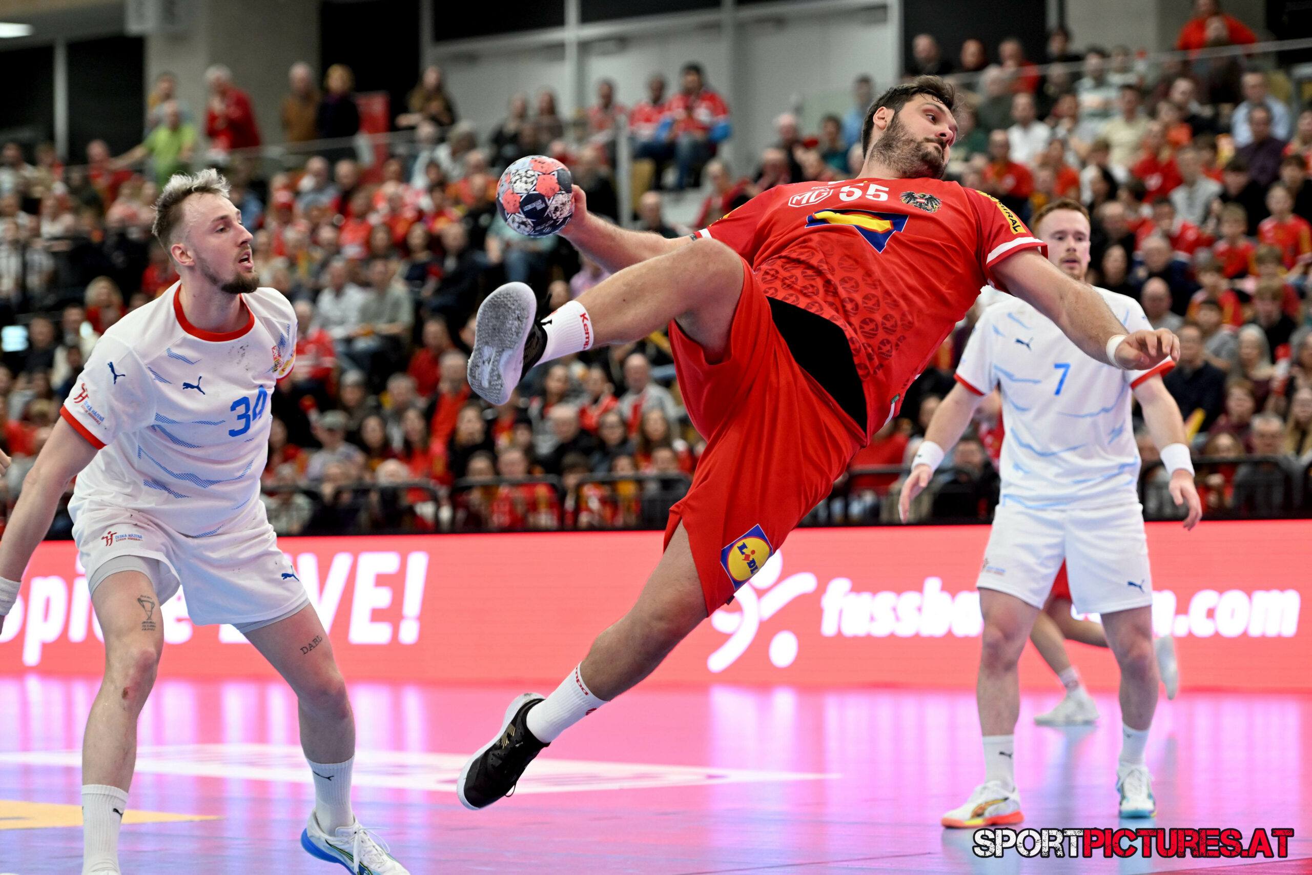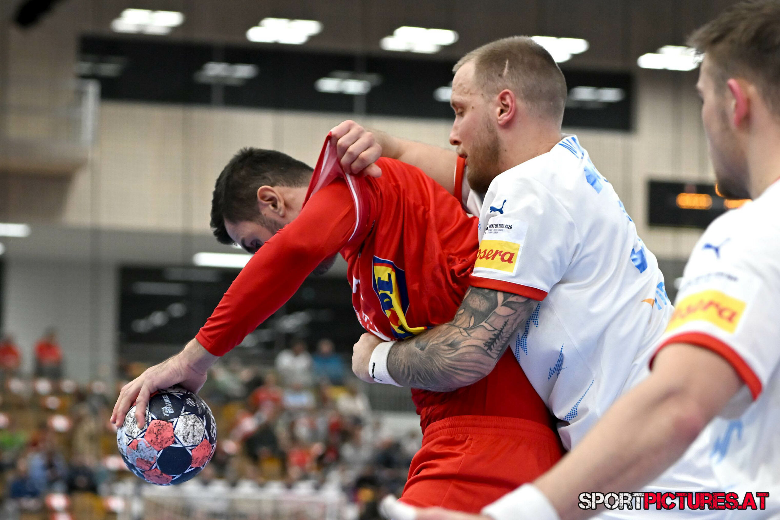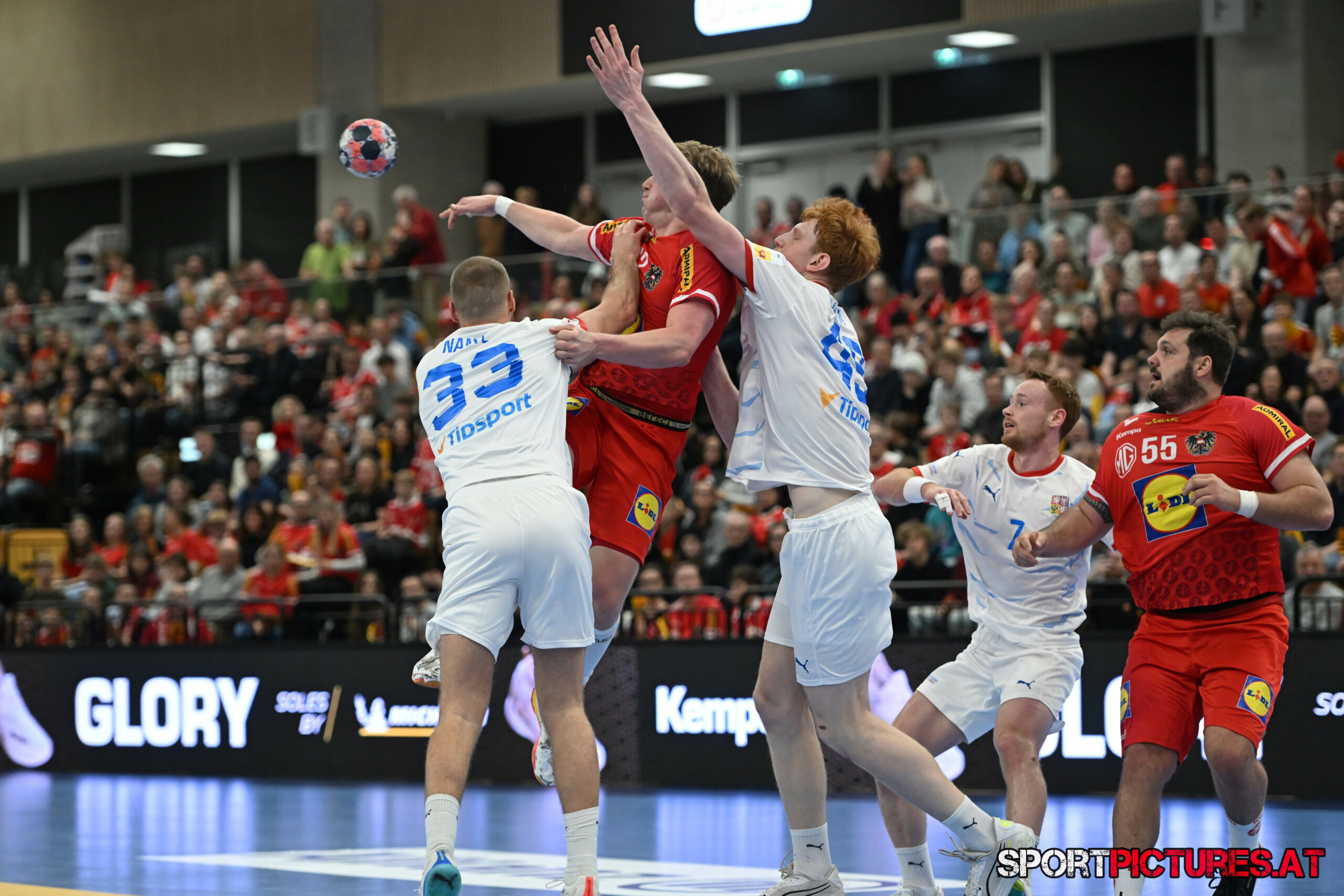 Wien,Österreich, 06.JAN.26 - Handball, Testspiel, Oesterreich - Tschechien. Bild zeigt Nikola Bilyk, Jan Uzek, Matej Nantl. Photo: sportpictures.at/Wolfgang Kern
