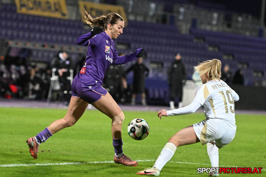 Zu Beginn entwickelte sich eine offenere Partie als noch im Hinspiel, in dem die Austria vor allem defensiv gefordert gewesen war. Die beste Chance der Gäste vor der Pause entschärfte Torfrau Jasmin Pal, als sie einen Schuss von Hallie Bergford parierte. Kurz vor dem Halbzeitpfiff bot sich Lena Triendl eine gute Umschaltsituation, die jedoch ungenutzt blieb.